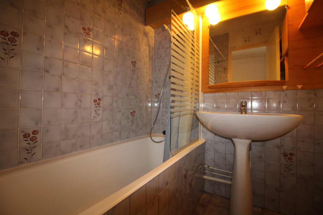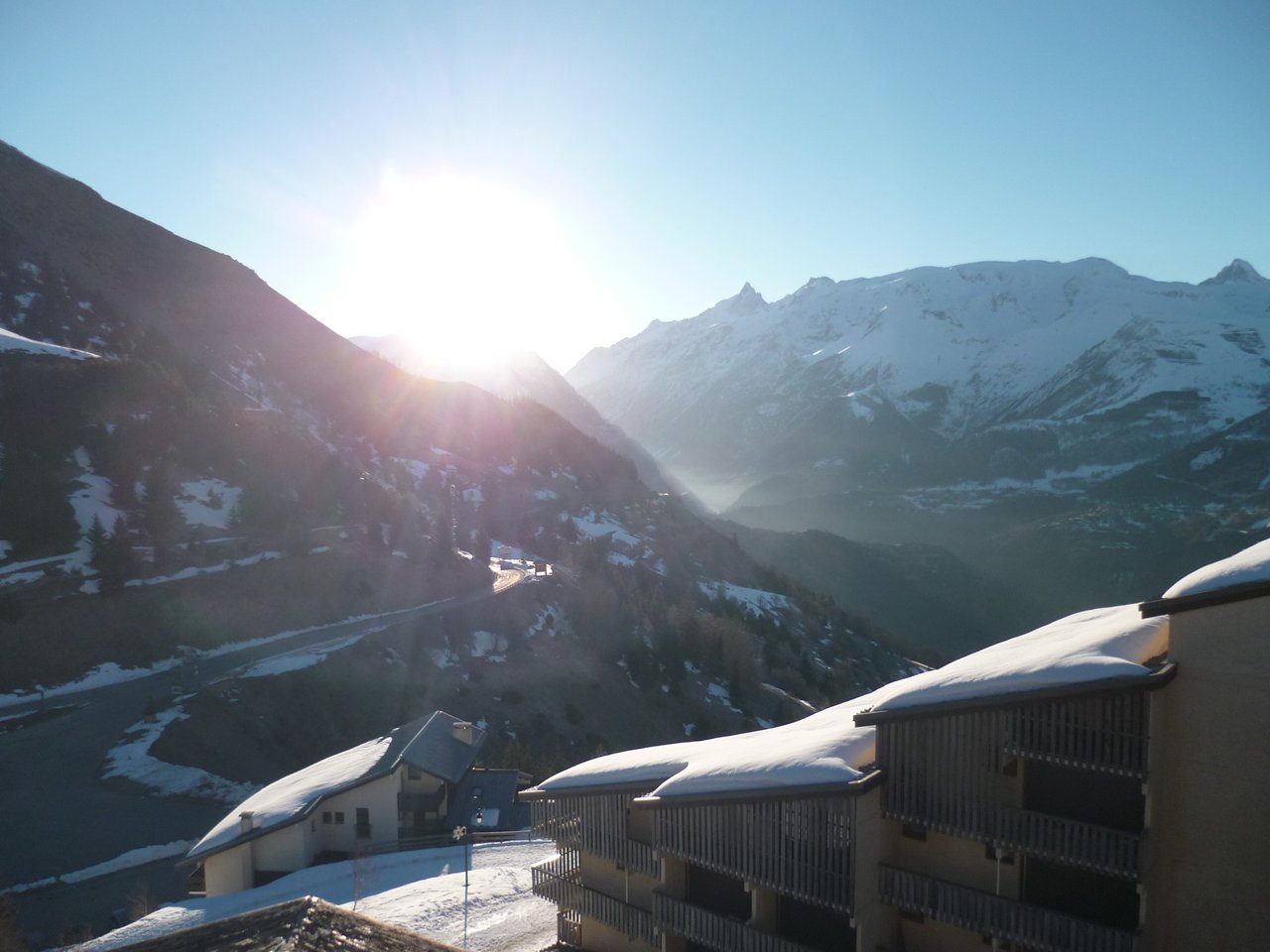 Spacious and nicely decorated studio in ski to door residence on pedestrian market place. South facing balcony with magnificent clear view on the Meije Glacier.