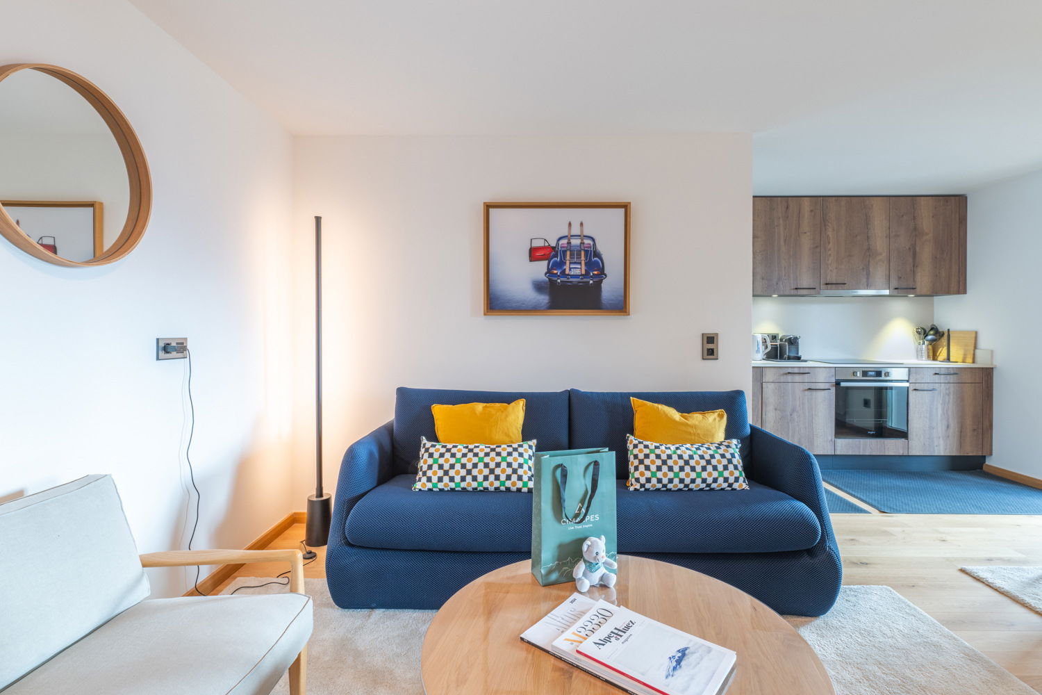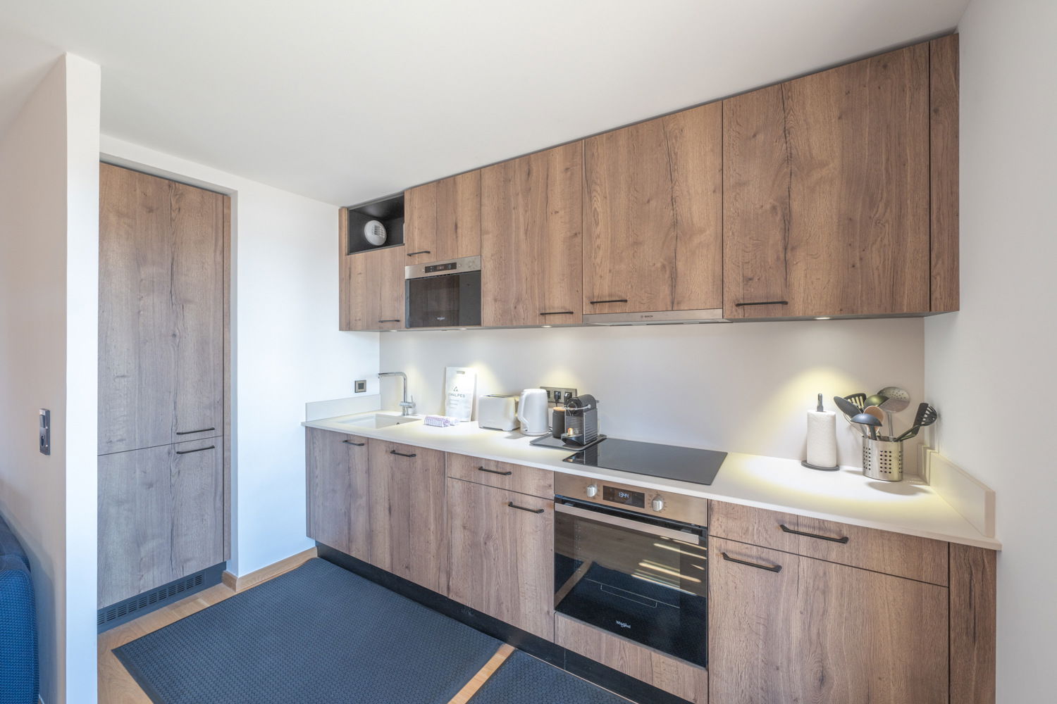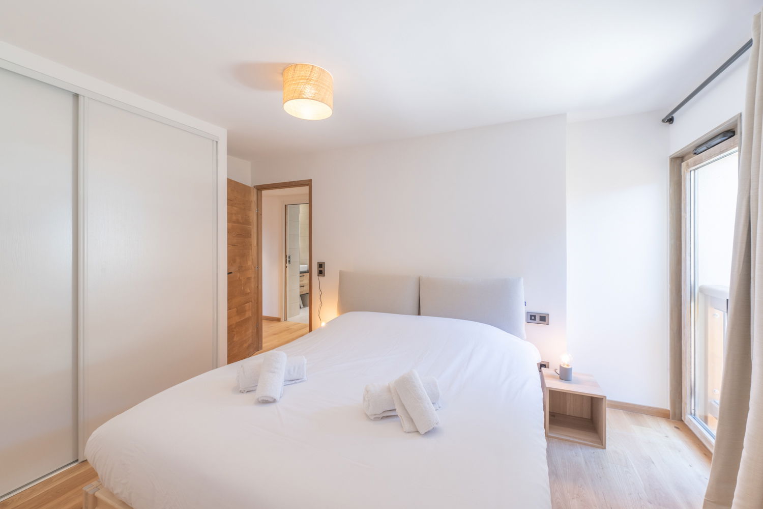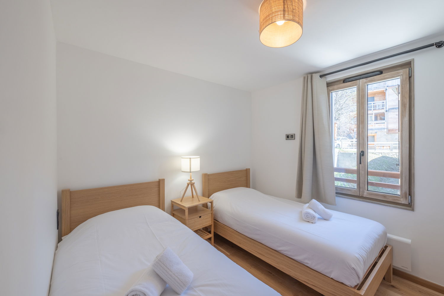 The Quartz residence, located in the heart of the historic Vieil Alpe district of Alpe d'Huez, offers an exceptional setting for winter sports enthusiasts. Ideally located, it allows ski-in ski-out access directly to the residence and is right opposite the ski lifts, guaranteeing quick access to the slopes. The south-facing apartment offers a warm atmosphere thanks to its natural wood decor and light-filled rooms for 4 adults.