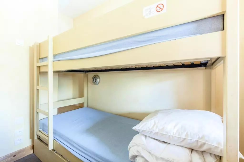 Living room facilities: 2 sofa beds, 1 with a pull-out bed and 1 cabin area with 1 bunk bed. Dining area: a table with 4 chairs, 1 bench and 2 stools.