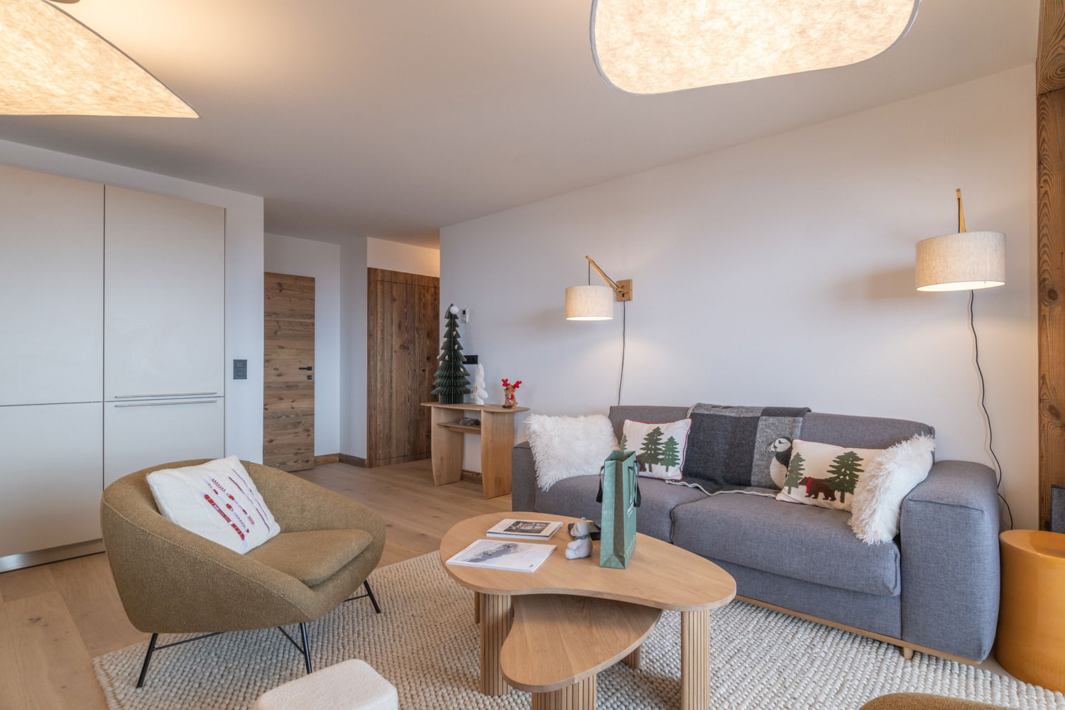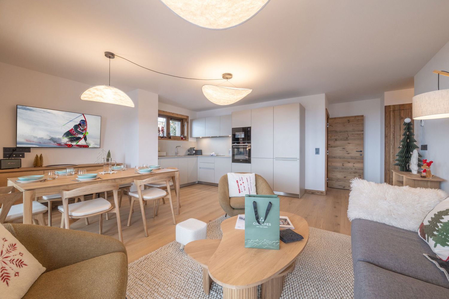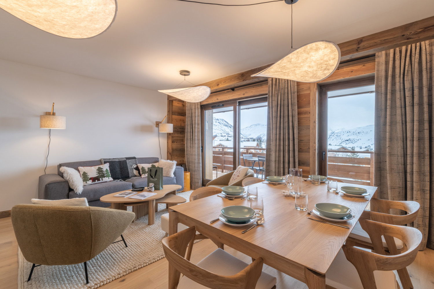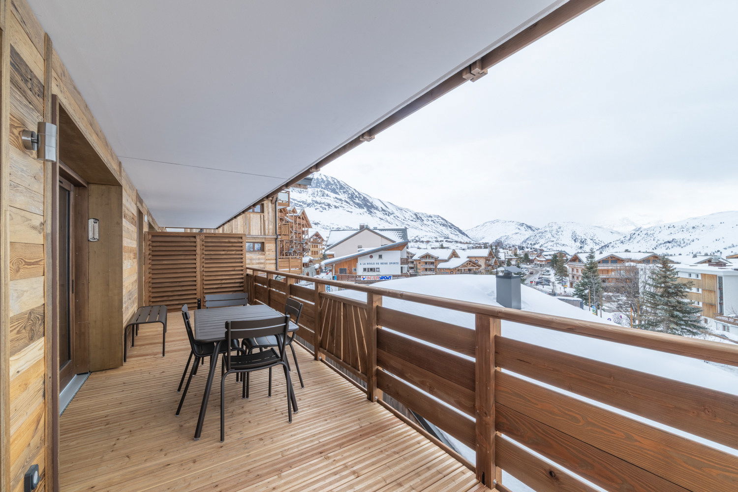 The elegant 84sq.m LBA A202 apartment, located on the 2nd floor, can accomodate up to 4 adults and 2 kids in its 2 double bedrooms en suite and a mountain corner. Access to a private south facing balcony from the living room allows you to enjoy an exceptional panorama, extending the spaciousness offered by this luxury apartment.